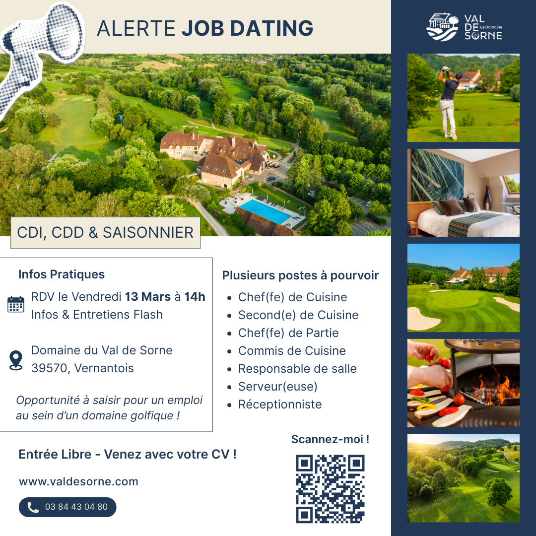 Le vendredi 13 mars à 14h, nous organisons un job dating au sein du Domaine du Val de Sorne à Vernantois.